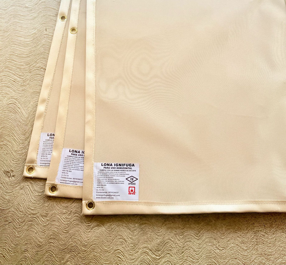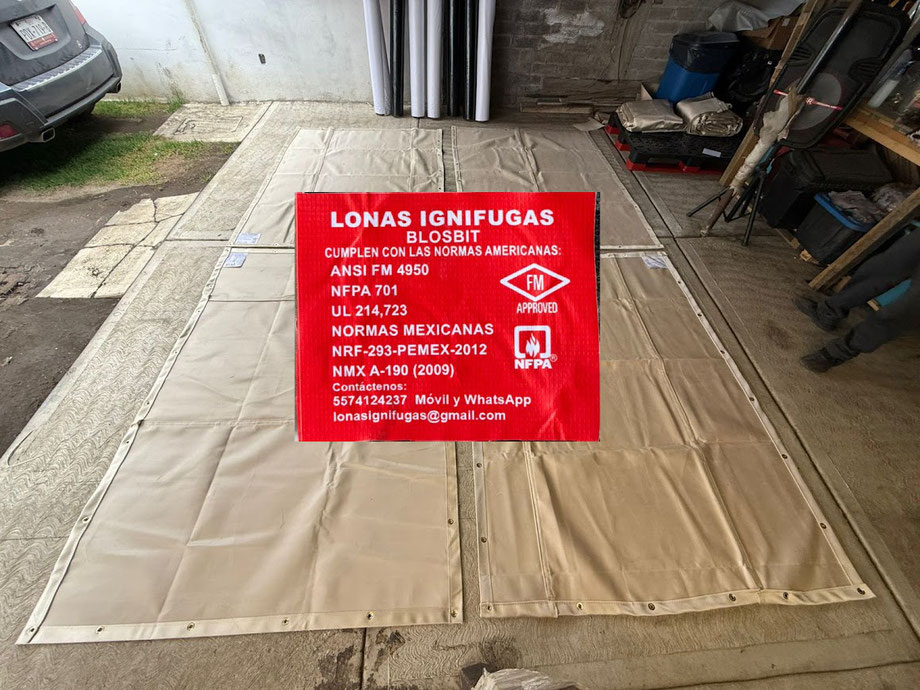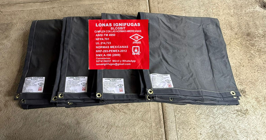 Lonas ignífugas para soldadura, para uso horizontal y vertical. Aprobadas por FM. Soportan altas temperaturas, escoria de metales fundidos, salpicadura y chispa de soldadura.